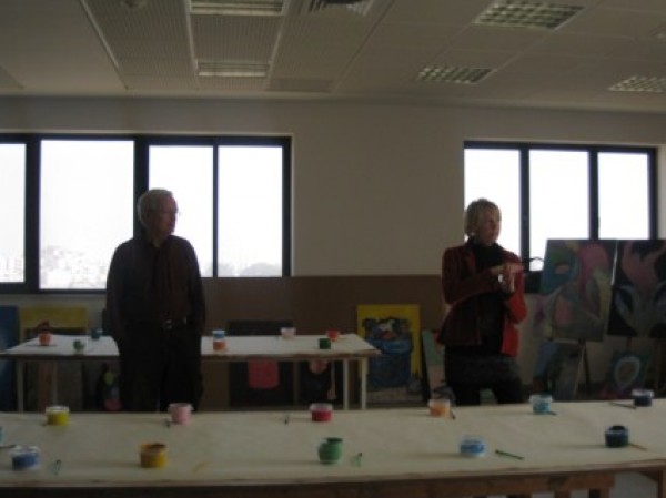 حيث انعقدت ورشة الرسم بألوان الاكريليك ، وتم العمل من خلالها على تحفيز التواصل الفني بين الثقافات والحضارات المختلفة وعلى محاولة انتاج لوحات فنية غاية من الجمال.