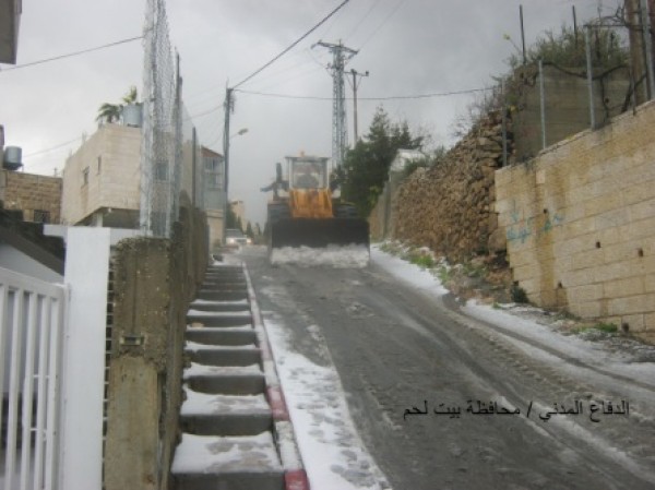 عملت طواقم مديرية دفاع مدني بيت لحم على شق وفتح الطرق الرئيسية والفرعية في محافظة بيت لحم بالتعاون ولشراكة مع آليات الحكم المحلي والمجالس القروية والبلدية ، فعلى مدار الساعة ومنذ بدء تساقط الثلوج على المحافظة والطواقم في إستنفار دائم .