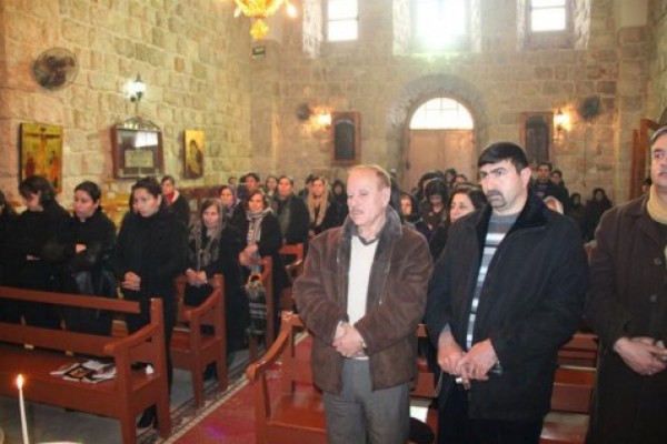 وقد رتلت جوقة الكنيسة وحضر حشد من المصلين الذين وصلوا رغما عن تراكم الثلوج والطقس البارد .