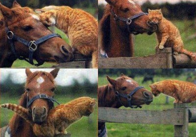 في هذه الصورة تلاحظون صداقة من نوع آخر نشأت بين فرس وقطة .