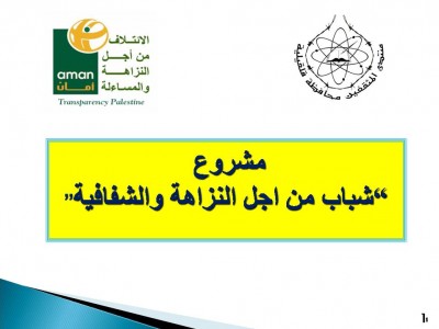 أطلقت جمعية منتدى المثقفين الخيرية وبالتعاون مع الائتلاف من اجل النزاهة والمساءلة "أمان" برنامجا إذاعيا لتعزيز قيم الشفافية والنزاهة ومكافحة الفساد، وذلك ضمن فعاليات ونشاطات مشروع "شباب من اجل النزاهة والشفافية" والذي تنفذه جمعية منتدى المثقفين الخيرية وبالتعاون مع الائتلاف من اجل النزاهة والمساءلة "أمان" في محافظة قلقيلية.