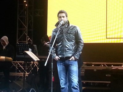 وفي الصور يبدو عازار أثناء التمرينات على وصلته الغنائية، والتي يؤدي فيها مجموعة من أغنياته.
