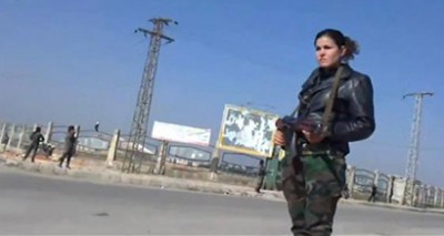 وأوضح الشريط، الذي ظهر على موقع يوتيوب، الفتيات المسلحات اللواتي كن يرتدين زي الجيش الحكومي السوري وهن يقمن بأعمال الدورية والحراسة عند ما يسمى "دوار المواصلات" في حمص.
