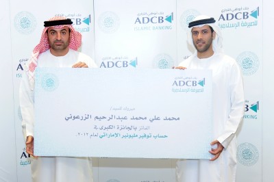 أعلن بنك أبوظبي التجاري للصيرفة الإسلامية اليوم عن إسم أول إماراتي فائز بالجائزة الكبرى عن "حساب توفير مليونير الإماراتي" والبالغة 2,700,000 درهم، عبارة عن دفعات شهرية بقيمة 15.000 درهم لمدة 15 سنة. وتسلّم السيد/محمد الزرعوني الجائزة في الفرع الرئيسي للبنك من قبل السيد/ عمرو المنهالي، رئيس دائرة الصيرفة الإسلامية في بنك أبوظبي التجاري.