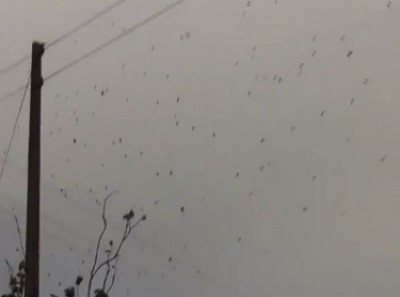 في ظاهرة غريبة أثارت دهشة المارة، نشر مقطع فيديو على موقع "يوتيوب" الجمعة الماضية، يظهر المئات من العناكب كبيرة الحجم، تتدلى من على شبكة كبيرة شكلتها على كوابل الهاتف، لتشكل مشهداً أشبه بأن السماء تمطر من هذه الحشرات، حسب ما ذكرت صحيفة "الاندبندنت" البريطانية.