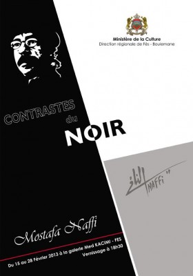 تنظم المديرية الجهوية لوزارة الثقافة بجهة فاس بولمان، معرضا للمنجزات الفنية للفنان التشكيلي مصطفى النافي، برواق محمد القاسمي بفاس، من 15 إلى 28 فبراير 2013،في الساعة السادسة والنصف مساء، تحت عنوان: " تناقضات الأسود"، ويتضمن المعرض 39 لوحة فنية، يدبر فيها "النافي "مرحلة تشكيلية تعتمد على ابراز التصدعات الانسانية، بثنائية الأبيض والأسود، مع بعض التلميحات اللونية، والضربات الفنية، باقتصاد بليغ يتكئ على الألوان الساخنة، في محاولة لتشكيل الفراغ المنحوت بدقة مدروسة، بإحساس ينسجم وفق الأبيض المتخيل والذي يجاور فلسفة الأسود.