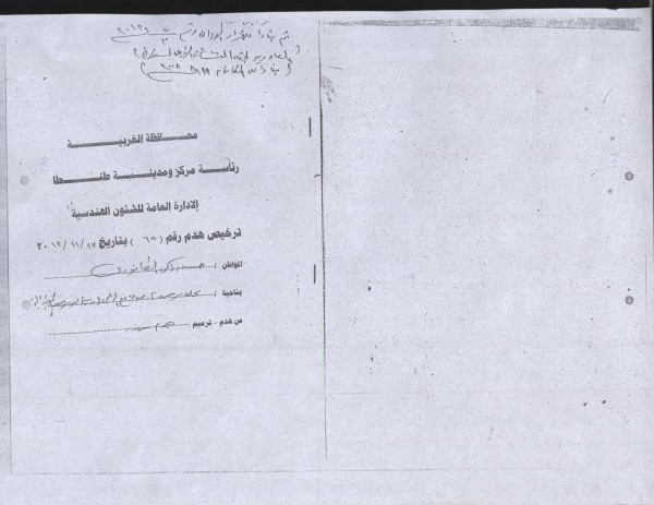 كما ارسل مجلس المدينة خطاب شديد اللهجة لمديرية التربية والتعليم وهيئة الابنية فى 12فبراير 2013وتحميلهم المسئولية المدنية والجنائية في حالة حدوث انهيار مفاجئ وما ينتج عنه من خسائر بشرية ،كما أصدر مجلس المدينة رخصة لهدم للسور كما قام مالك العقار الذى تستخدمه المدرسة بإنذار على يدر محضر محافظ الغربية في 3فبراير 2013 وتحمله المسئولية الجنائية