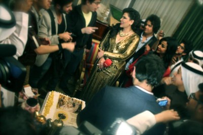 وغنت الفنانة أسماء لمنور عند قطع قالب الحلوى بطلب من الفنانة أحلام.