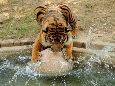 أصاب نمر سيبيري رجلا بجروح خطيرة بعدما قفز إلى داخل عرينه في حديقة حيوانات برونكس بمدينة نيويورك في الولايات المتحدة أمس الجمعة. ولم يتراجع النمر إلا بعدما أجبره رجال الطوارئ على التراجع باستخدام طفاية حريق.