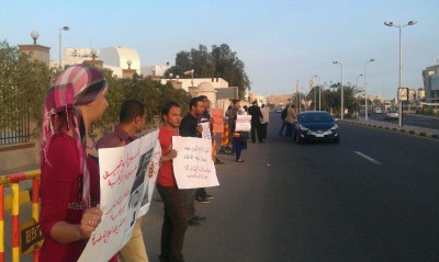 سلالسل بشرية امام مديرية امن البحر الاحمر تنديدا بجرائم الداخلية