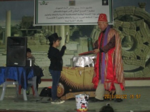 ففي قاعة المركز الروسي للعلوم والثقافة في بيت لحم جرى المهرجان بحضور حوالي(500) مشارك من أطفال وأهالي الشهداء الذين تفاعلوا بشكل كبير مع الفقرات الفنية والسحرية والترفيهية التي قدمها الفنان الشحبري.