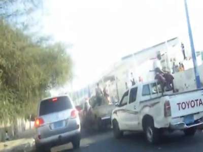 ويظهر المقطع المصور مسلحين "ملتحيين" يحملون أسلحة رشاشة يستقلون إلى جانب جنود أمن يمنيين سيارة شاص مدنية تحمل الرقم ( 3- 12849) ويظهر إلى جانب السيارة وكيل محافظ عدن الضلاعي (شمالي) وهو يشير بيده مبتسما في