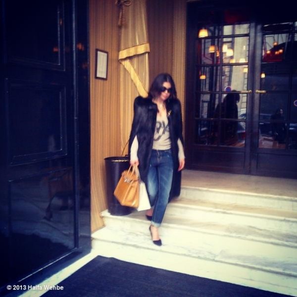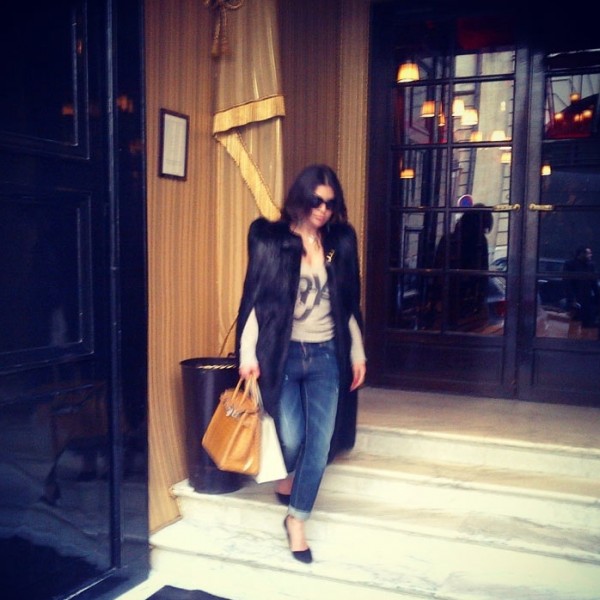 وقد نشرت صورة لها من باريس تظهر فيها مرتديةً السترة السوداء.