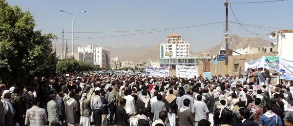 احتجاجية حاشدة نفذها مشائخ وأبناء المناطق الوسطى وعدد كبير من النشطاء والحقوقيين من مختلف المناطق اليمنية للتنديد بانفلات الأمن والمطالبة باللقاء القبض على زعيم عصابة مسلحة قتلت الخميس الماضي ضابط في الجوية ونائب مدير مكتب الأشغال بمحافظة صنعاء.