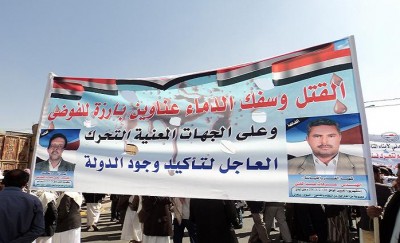 ورفع المحتجون الذين احتشدوا بالآلاف في شارع 22 مايو بصنعاء صورا للشهيدين المهندس عرفات عبدالمغني نائب مدير مكتب الأشغال بمحافظة صنعاء والعقيد في القوات الجوية يحيى الجماعي الذين استشهدا مساء الخميس الماضي على يد عصابة مسلحة استحدثت نقطة قطاع وتفتيش بزعامة عقيد في الحرس الجمهوري يدعي محمد حمود السوادي. كما رفع المحتجون