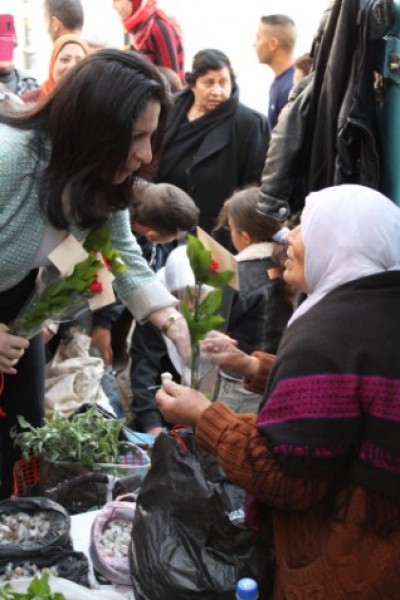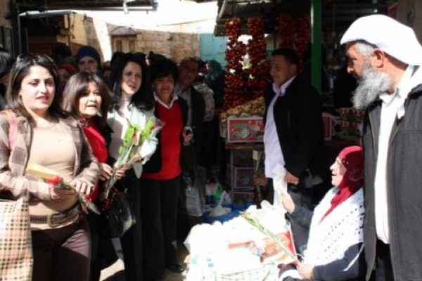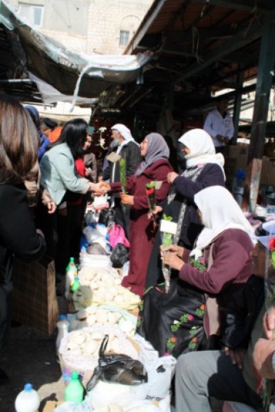 شاركت رئيس بلدية بيت لحم أ. فيرا بابون تجمّع المؤسسات النسوية في محافظة بيت لحم في توزيع الورود على البائعات في سوق المدينة، حيث شملت الجولة سوق المدينة القديم العلوي والسفلي هنأنّ خلالها البائعات والسيدات اللاتي تواجدنَ هناك.
