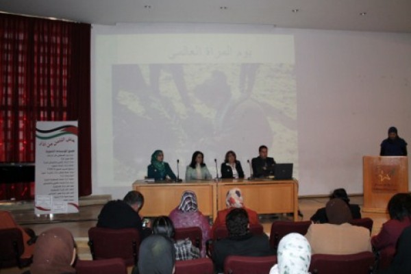 ومن ثم شاركت رئيس البلدية في الحفل الذي جرى في مركز السلام، إذ ألقت كلمةً أشارت فيها إلى أنّ نساء فلسطين يختلفن عن نساء العالم، فهنّ يعشنَ تحت الاحتلال ويكافحنَ، وهنّ صامدات، ويُعطينَ للعزةِ معنى.