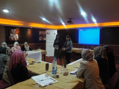 وقدمت التدريب البروفسورة المتخصصة في الإعلام ومهارات الاتصال والعلاقات الدولية ايفون ر. ديفيس، بحيث عرفت المشاركات على أنواع مختلفة من وسائل الإعلام التي يمكن استخدامها لتعزيز لقضاياهن، وتحدثت عن الأساسيات المطلوبة عند التعامل مع وسائل الإعلام، كما ذكرت أنواع التغطية الإخبارية والخطوات الضرورية للإعداد من أجل المقابلة الصحفية، ومعرفة الجمهور المستهدف، وركزت على أهمية الإعلام الاجتماعي مثل المقابلات عبر السكايب- كمصدر هائل للأخبار للصحافة والأخبار الوطنية والدولية، والمقابلات عبر التويتر- إذ يتم الاعتماد عليها بشكل كبير من قبل وسائل الإعلام الدولية، والمؤتمرات عبر اليوتيوب- حيث يتم الرجوع إليها من قبل وسائل الإعلام للحصول على معلومات، وأوضحت ديفيس للمشاركات أهمية المظهر الخارجي، والتعامل مع لغة الجسد، والتحضير المسبق للتخاطب مع الإعلام، بالإضافة إلى قضايا إعلامية أخرى.