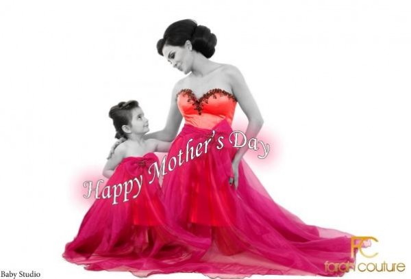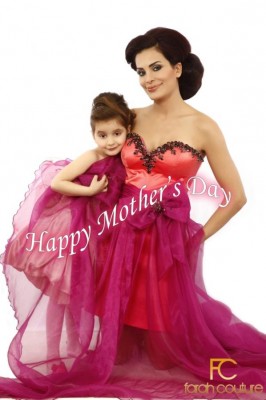 ولهذه المناسبة إختارت دومينيك وإبنتها الظهور بتصاميم من المجموعة الخاصة بالأم والطفل من دار “Farah Couture”.