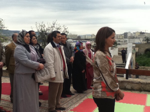 وما أجمل أن تحس بالآخر وتجلس نعه على مائدة واحدة ببناية " دارنا " هذه المؤسسة الاجتماعية، تناولنا وجبة الغذاء على نغمات " كناوة " وبحوار مغربي أمريكي، واختتم هذا اللقاء الهام والهادف الناجح،بحفل شيق أقيم بفندق " المنزه " أحياه جوق " نسيم الأندلس " شرَّفته الشَّريفة الجليلة حفيدة السلطان مولاي عبد العزيز للا أم كلثوم بنت مولاي الحسن بن المهدي العلوي. ومستشار الشؤون الثقافية والإعلام السيد "كريستوف فتجرال" بسفارة الولايات المتحدة الأمريكية بالرباط، وشخصيات مغربية وأجنبية، فتفضلت الشريفة للا أم كلثوم بتقديم هدية رمزية تكريماً لسيدة وهي إطار سامي بسفارة الولايات المتحدة الأمريكية بالرباط، لها سُمعة طيبة بخلقها ومُعاملتها الرقيقة،إنها " دومينيك بنبراهيم " عبارة عن قطة مصنوعة بالفخار لصانعة تقليدية طنجاوية سهام خربوش، هذه القطعة الفنية أدهشت الحضور لجماليتها الإبداعية.ثم قدمت الشريفة تذكار وهو عبارة عن مُجسم لخريطتين المغربية والأمريكية، له دلالات وإشارات مُضيئة في تاريخ الصداقة المغربية الأمريكية العريقة، للفنان التشكيلي المُبدع سعيد الهبيشة تقديراً له على إبداعاته الرَّائعة، وتمتيناً للصداقة المغربية الأمريكية وتقويتها بلُغة الفن والإبداع والمُجسم من إبتكارالفنان التشكيلي الشاب فوزي الطنجبة، فببهو الفندق عُرضت بعض لوحات الفنان المُكرم، فهذه الإبداعات التي جعلت الشريفة للا أم كلثوم تندهش لجماليتها وإحساسها الصادق في التبليغ، فهنيئاً للفنان التشكيلي سعيد الهبيشة، الذي ينتمي إلى مدرسة تطوان الخالدة بفنها التشكيلي الرائع.