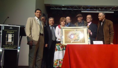 ومباشرة بعد تلك القراءات الأنيقة تحول المحفل إلى لحظة تكريم رائقة قدم خلالها السيد المدير الجهوي لوزارة الثقافة السيد عبد الرحيم البرطيع هدية تذكارية للشاعر الكبير المحتفى به احمد بلحاج آية وارهام وهي عبارة عن لوحة فنية قيمة يرجع تاريخها الى سنة 1986 وتحمل توقيع الفنان العالمي الباحث محمد البندوري.