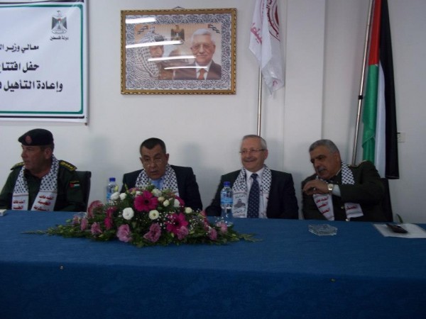 افتتح وزيرا الداخلية سعيد أبو علي، والصحة هاني عابدين، اليوم الإثنين، قسم العلاج الطبيعي والوظيفي في مستشفى فلسطين العسكري 'حرملة'. ونقل وزير الداخلية تحيات الرئيس محمود عباس على هذا الإنجاز الكبير الذي يصب في خدمة القطاع الصحي وتوفير الخدمات للمواطن.