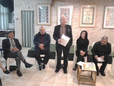 لقاءاتُ منتدى الحوار الثقافيّ تتجدّد شهريًّا، وفي مركز التراث" البادية" عسفيا الكرمل بتاريخ 26-3-2013 يتكلّل اللقاءُ بالمعرض الحروفيّ للفنان كميل ضوّ، وبحروف الشاعرة الواعدة حنان جريس خوري، وبعد استعراض اللوحات، افتتح اللقاءَ رشدي الماضي فجاء في كلمته: