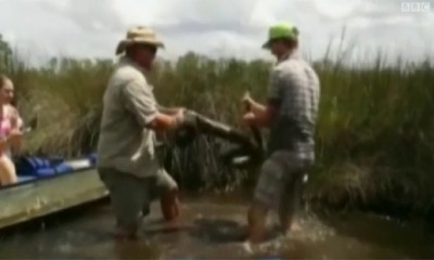 فوجئ فوج سياحي يزور منطقة إيفرغلايدس بولاية فلوريدا الأمريكية، بمرشدهم يقفز من المركب الذي كانوا يستقلونه ليتصارع مع ثعبان بطول ثلاثة أمتار، ويقتله.