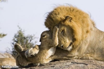 قد تبدو هذه الصور لهذه الأشبال الصغيرة كالمشاهد السينمائية المأخوذة من أحد أفلام ديزني للأطفال حيث يلاعب الأسد أشباله في أحد البراري الأفريقية بطريقه أشبه ما تكون للقاء البشر بعد طول فراق, هذه المجموعة من الأشبال التي لايزيد عمرها عن 7 أسابيع إبتدأت لقائها لأول مرة مع والدها الضخم لأول مرة بقليل من التوتر والقلق والخجل والذي ما لبث أن زال حين بدأ الأب