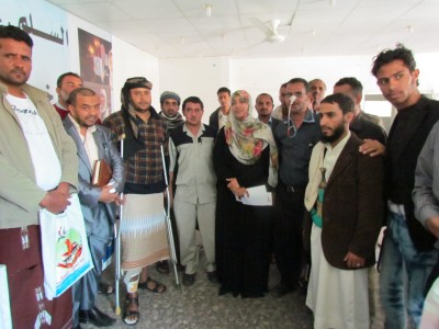 ناقش مجموعة من الجرحى أوضاعهم يوم أمس الثلاثاء في اجتماع مع توكل كرمان في منظمة صحفيات بلا قيود، ليتم مناقشة أوضاعهم واحتياجاتهم، إضافة إلى مناقشة موضوع المنحة العلاجية إلى الأردن والتي ستشمل 13 حالة منهم،في البداية أبدى الجرحى ارتياحهم للقرارات الصادرة مؤخراً والتي تقضي بتوحيد الجيش، إذ أنها على حد تعبيرهم أشعرتهم بان هناك قيمة حقيقية لتضحياتهم.