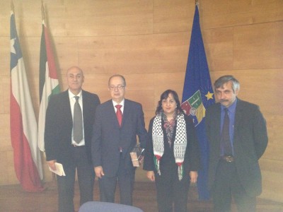 سعادة السفيرة د. مي الكيلة والسيد موريسيو أبو غوش رئيس الفدرالية الفلسطينية والأستاذ هيرم فياجرا الخبير بالقانون الدولي استاذ القانون في جامعة تاراباكا نيابة عن السيد أوجو تيرس عضو مجلس النواب في تشيلي ندوة تناولت تاريخ الحركة الأسيرة ووضعهم في القانون الدولي بحضورعدد من أعضاء السلك الدبلوماسي وطلبة الجامعة، ويأتي هذا النشاط ضمن سلسلة نشاطات مزمع عقدها بمناسبة يوم الأسير الفلسطيني . حيث ابتدأ النشاط بالنشيد الوطني التشيلي والفلسطيني تلاهما كلمة ترحيبية من عميد كلية الحقوق الدكتور روبرتو نعوم.