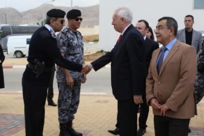 زار وزير الخارجية والتعاون الاسباني جارسيا مارغالو اليوم كلية فلسطين للعلوم الشرطية في مدينة أريحا ، حيث كان في استقباله وزير الداخلية الدكتور سعيد أبو علي ومدير عام الشرطة اللواء حازم عطا الله .
