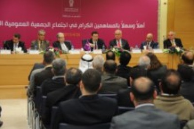 عقد بنك فلسطين يوم الجمعة الموافق 2013/04/26 اجتماعه السنوي العادي للجمعية العمومية، بمقر المركز الرئيسي للإدارة العامة، بمدينة رام الله، بالتواصل عبر "الفيديو كنفرنس" مع مقر الإدارة العامة بغزة. وذلك بحضور رئيس مجلس ادارة البنك والمدير العام الاستاذ هاشم الشوا، وأعضاء مجلس الإدارة ومراقبي الشركات في وزارة الاقتصاد الوطني، وممثلي عن المدقق الخارجي للحسابات وبورصة فلسطين وسلطة النقد وهيئة سوق رأس المال الفلسطينية، وحشد كبير من المساهمين والعاملين والاقتصاديين ورجال الأعمال ووسائل الاعلام.