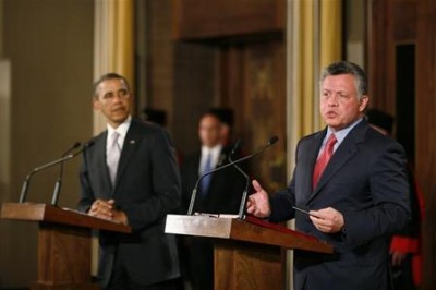 واعرب الملك عبدالله الثاني عن تلاق في الموقف الأميركي - الأردني في شأن سورية وقال أن «التحدي اليوم هو من تفكك المجتمع السوري» وتحدث عن نزوح ٦٠ ألف لاجئ جديد منذ لقائه الأخير بالرئيس الأميركي قبل أربعة أسابيع، مشيراً الى أن عدد اللاجئين السوريين (نصف مليون) في الأردن بات يعني زيادة ١٠ في المئة في عدد السكان. ونادى العاهل الأردني بالعمل المشترك مع الولايات المتحدة للوصول الى حل سياسي للأزمة السورية وأيضاً مع كل من الامارات العربية المتحدة والمملكة العربية السعودية.