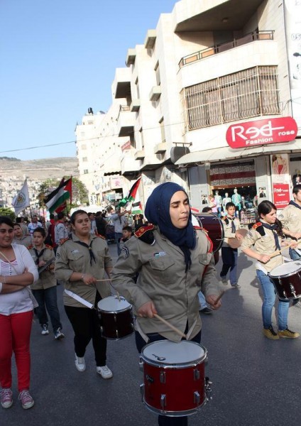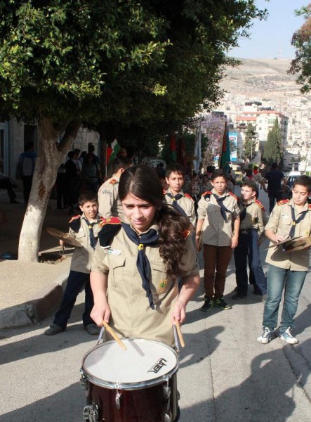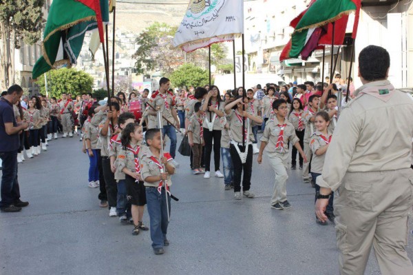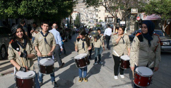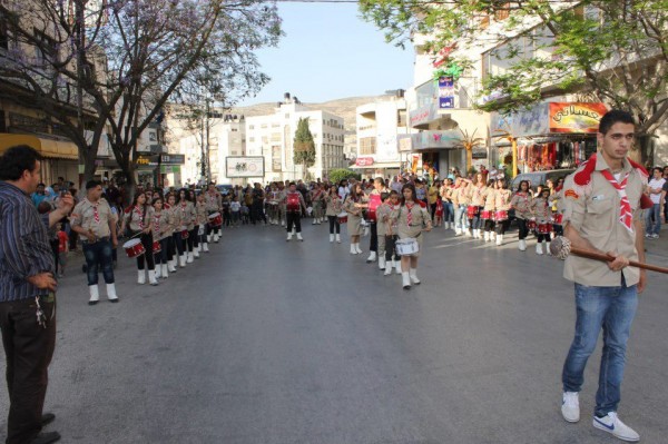 عشيرة جوالة ومنجدات جامعة النجاح، ومجموعة كشافة ومرشدات نادي جبل النار، استعراض كشفياً جاب شارع رفيديا الرئيسي بمناسبة سبت النور وعيد الفصح المجيد لدى الطوائف