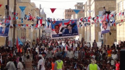الحضرمي ومشاركة لافتة ومميزة هذا وقد توقفت الحشود الزاحفة عند مدخل المدينة لينطلقوا بموكب جماهيري هز اركان المدينة وقد رفع المشاركون الشعارات التي تؤكد على مبداء التحرير والاستقلال وتوقفت الجماهير في وسط المدينة حيث انتصبت المنصة التي تصدرت واجهتها صور لقيادات الجنوب