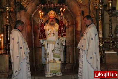 تضامنا مع مطارنة حلب المختطفين ومن اجل الصلاة من اجلهم ومن اجل كافة المخطوفين والمتألمين والمعذبين في سوريا اقيم صباح اليوم قداس إلهي كبير داخل القبر المقدس في كنيسة القيامة في القدس العتيقة برئاسة سيادة المطران عطاالله حنا رئيس اساقفة سبسطية للروم الارثوذكس يشاركه لفيف من الكهنة والشمامسة