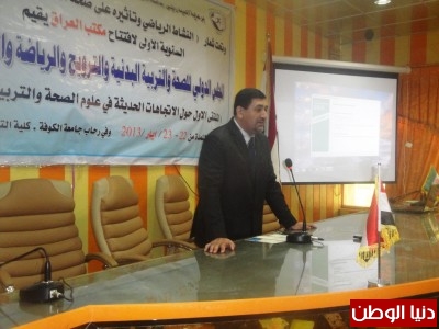 عقد المجلس الدولي للصحة والتربية البدنية والترويح الرياضي والتعبير الحركي مكتب العراق بجامعة الكوفة في النجف الاشرف الملتقى الأول بعنوان (الاتجاهات الحديثة في علوم الصحة والتربية الرياضية) للمدة من 22-23 أيار .