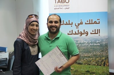 ويقيم المواطن سامح "حج محمد" وعائلته في مدينة رام الله، و يعمل موظفاً في شركة الاتصالات الفلسطينية "جوال"، وفي لقاء صحفي معه ومع وزوجته فاطمة التي تعمل موظفة في وزارة التخطيط الفلسطينية،روى سامح حج محمد والفرحة ترتسم على ملامحه وملامح زوجته قصة تملكه لقطعة الأرض من خلال مشروع "طابو"، قائلاً : "نظراً لطبيعة عملي التي تحتم عليّ البقاء في السيارة لفترات طويلة والتي أقوم خلالهاوأثناء قيادتي بالاستماع إلى الراديو، لفت انتباهي وأثار عاطفتي اعلان "طابو" الذي كان يبث علىاحدى المحطات الاذاعية الفلسطينية،والذي يتحدث عن مشروع ريادي يمكّن كل الفلسطينيين من استثمار أموالهم في امتلاك دونم أرض مع شهادة "الطابو" في فلسطين دون أي عناء، فأحسست حينها بقيمة الأرض، وأدركت القيمة الجوهرية للمشروع والتي تصب في المحصلة الأخيرة في حماية أراضينا الفلسطينية من عمليات الاستيطان التي ازدادت في الفترة الأخيرة".