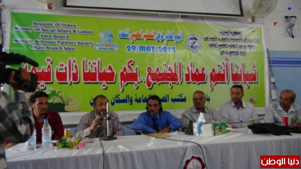 نظمت جمعية مرضى التصلب العصبي المتعدد بمدينة عدن صباح الثلاثاء الـ28 مايو الجاري فعالية احتفالية في قاعة كلية الطب بخور مكسر احتفاء باليوم العالمي لمرض " MS " الذي يتم إحياءه آخر يوم أربعاء من شهر مايو نهاية كل عام .
