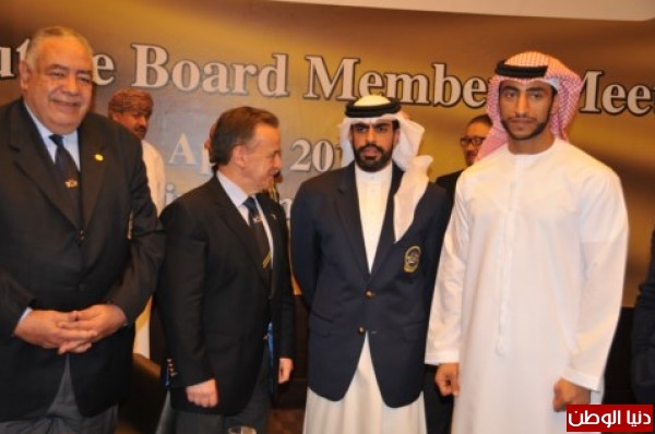شارك فى المؤتمر الصحفى الدكتور رفائيل سانتونجا رئيس الاتحاد الدولى والشيخ عبد الله بن راشد ال خليفة رئيس الاتحاد الاسيوى ومساعده التنفيذى الشيخ عبد الله بن حمد بن سيف الشرقى وعمده الماتى اخماتزهان يوسموف.