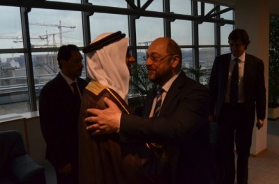 وقد رحب في بداية اللقاء معالي مارتن شولتز بمعالي احمد محمد الجروان الذي أكد على اهمية هذا اللقاء لتبادل وجهات النظر بمختلف القضايا الاقليمية و العربية،و شدد على اهمية وضرورة تعزيز التعاون في كافة المجالات السياسية و الاقتصادية .