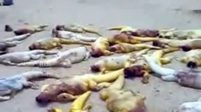 ويظهر الفيديو "مجزرة" حقيقية لـ"الضبان" فقد كانت تلك الزواحف ملقية في الأرض بكثرة، ويبدو الشباب سعداء بصيدهم الوافر، ومنهمكين بسلخ جلودها وتحضيرها للوضع في "ثلاجة صغيرة".
