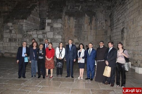 وقد زار الوفد بدايةً كنيسة المهد، حيث قدّم الأب ابراهيم فلتس شرحاً عن الكنيسة وتاريخها، ومن ثم جرى لقاء في فندق بالاس تمّ التطرّق خلاله لآخر المستجدات على الساحة الفلسطينية، وواقع مدينة بيت لحم من جميع النواحي، وأثر الجدار الفاصل وإجراءات الاحتلال في منطقة C.