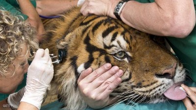 متنزه إسرائيلي يعالج نمرا بالوخز بالإبر
