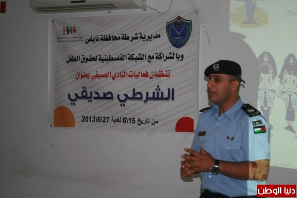 اطلقت،الشرطة،اليوم مخيم صيفي تحت عنوان"الشرطي صديقي" بالتعاون مع الشبكة الفلسطينية لحقوق الطفل في نابلس