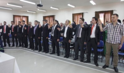 خريجو قسم التمريض في الجامعة العربية الامريكية يؤدون قسم المهنة