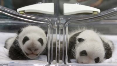 شهدت محمية طبيعية في جنوب غربي الصين ولادة أول توأم دببة باندا عملاقة، المهددة بالإنقراض، لهذه السنة.