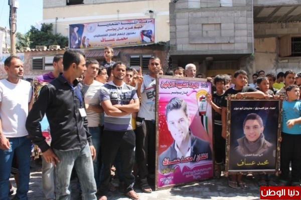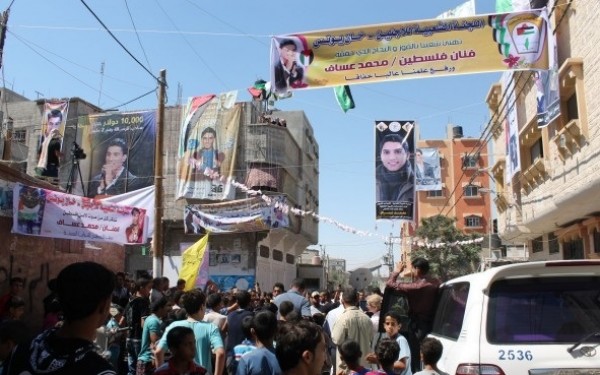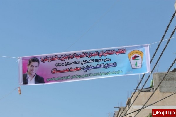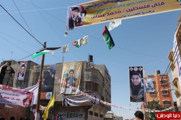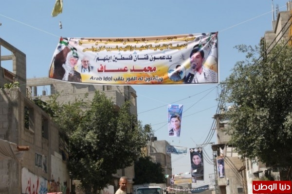 وحملت الجماهير الفلسطينية المحتشدة صور الفنان عساف والأعلام الفلسطينية واعلام دولة لبنان بينما صدحت اغانيه الوطنية امام منزله في مدينة خان يونس.