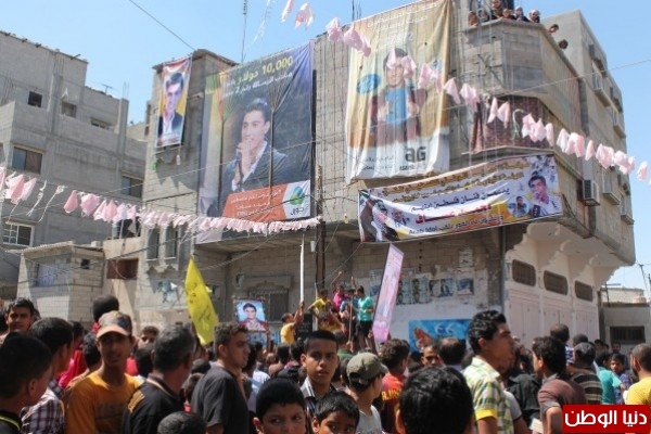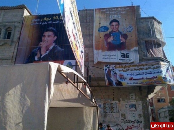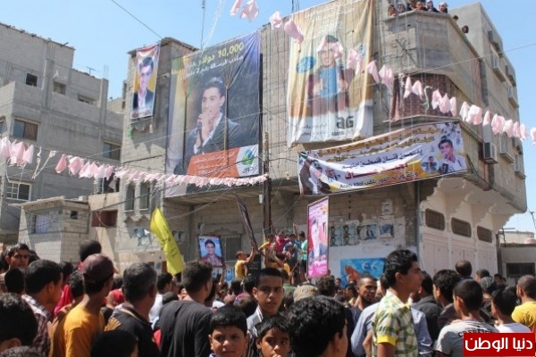 وتجمع آلاف المواطنين امام معبر رفح جنوب قطاع غزة وأمام منزل محمد عساف في مدينة خان يونس لاستقبال الفنان الفائز في مسابقة ارب ايدول .